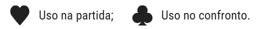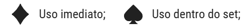 🟩 No momento de usar o poder (ver acima) o árbitro/contador de pontos irá apresentar as cartas e o jogador que está na mesa deve tirar uma e usar o poder (seguindo as regras dos nipes abaixo)